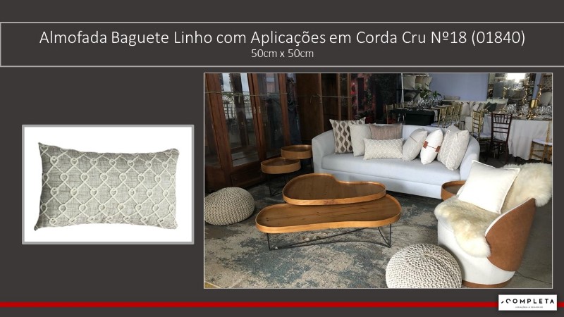 Almofada Baguete Linho com Aplicações em Corda Cru Nº18