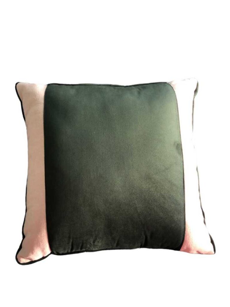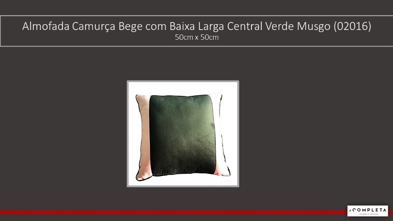 Almofada Camurça Bege com Baixa Larga Central Verde Musgo