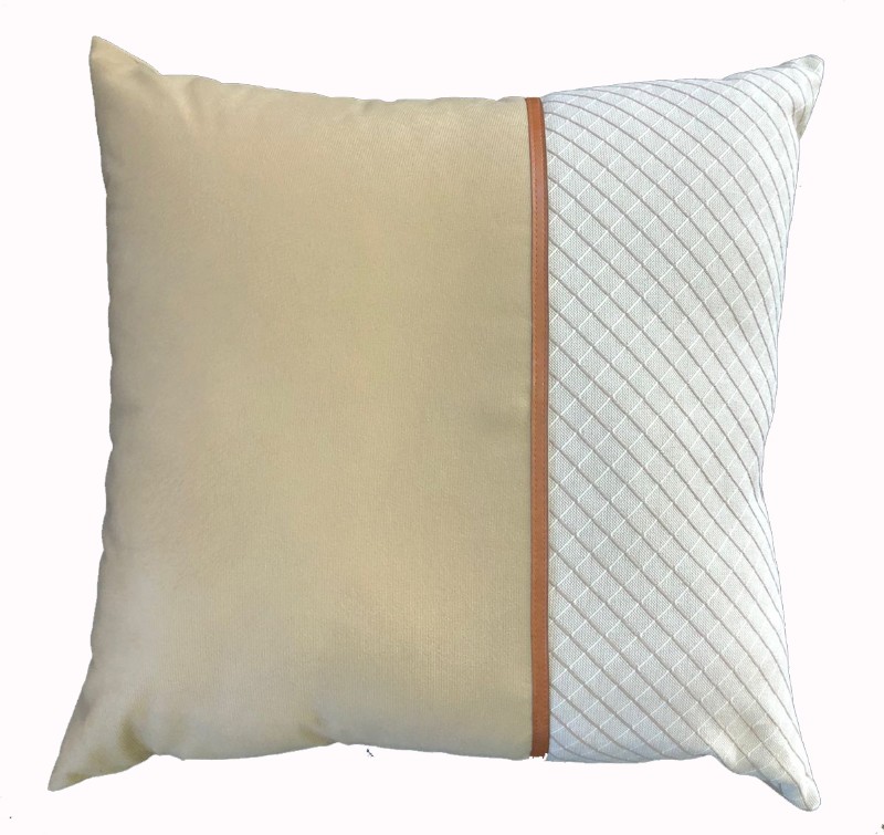 Almofada Cru Lateral Matelassê pequeno com Filete Couro Creme Nº06 - 50cm x 50cm