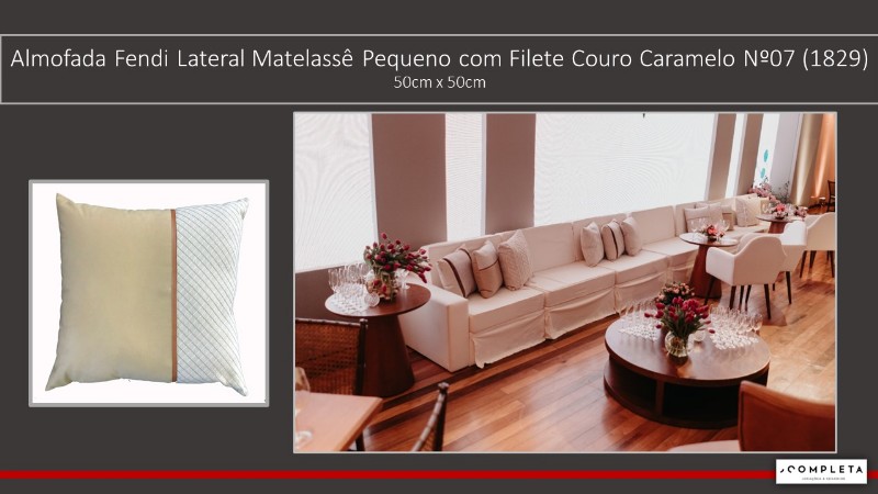 Almofada Fendi Lateral Matelassê Pequeno com Filete Couro Caramelo Nº07