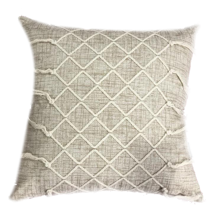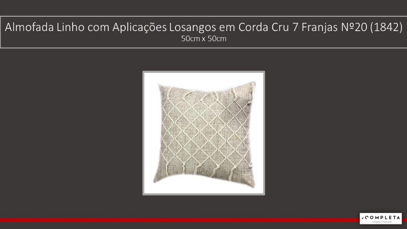 Almofada Linho com Aplicações Losangos em Corda Cru 7 Franjas Nº20