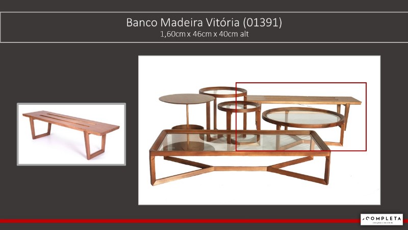 Banco / Mesa Apoio Madeira Vittória Retangular