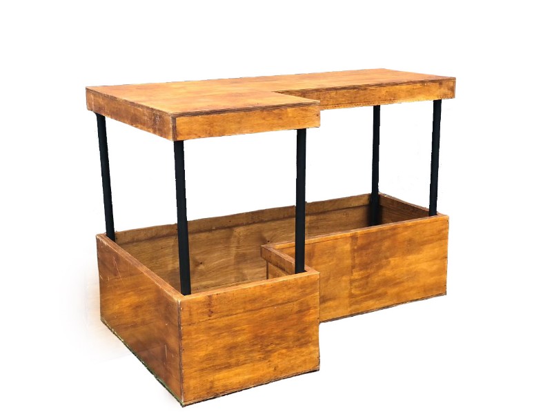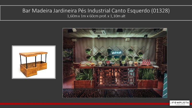 Bar Madeira Jardineira Pés Industrial Canto Direito - 1,60m x 1m x 60cm prof. x 1,10m alt