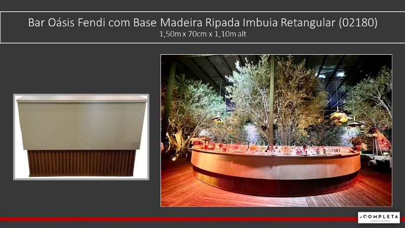Bar Oásis Fendi com Base Madeira Ripada Imbuia Retangular