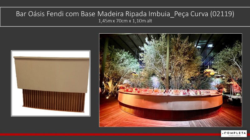 Bar Tropical Madeira Verde_Peça Curva 10 - 1,90m (curva externa) x 2,75m (c. interna) x 71cm larg x 1,11m al