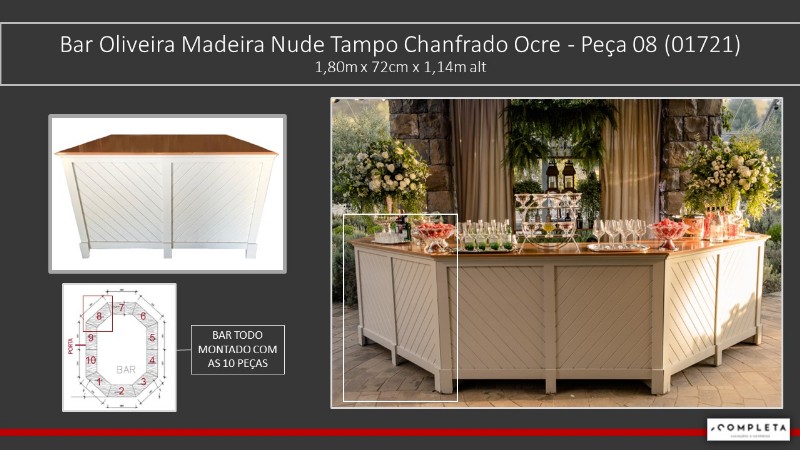 Bar Oliveira Madeira Nude Tampo Chanfrado Ocre - 5m larg x 6m comp x 1,14m alt_Bar Completo com 10 peças