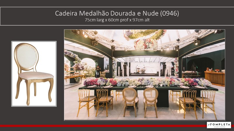 Cadeira Medalhão Dourada e Nude