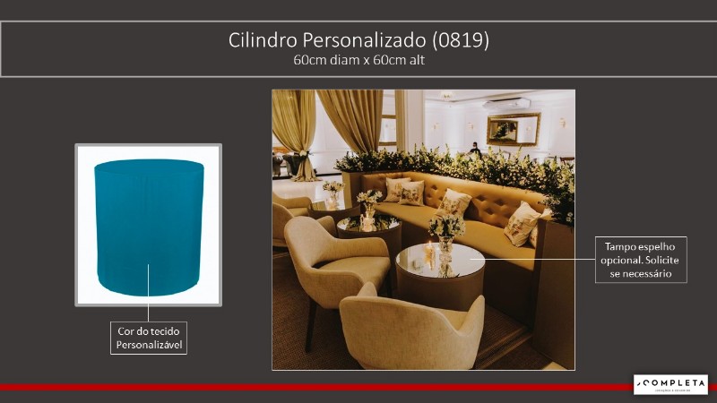 Cilindro Personalizado Tampo de Espelho - 80cm diam x 45cm alt
