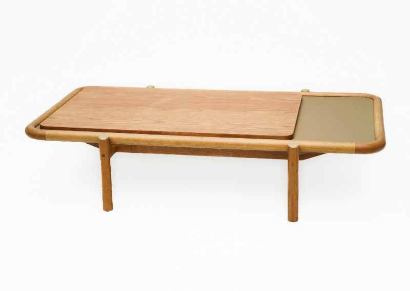 Mesa Centro Madeira Rita com Detalhe Couro no Tampo Retangular