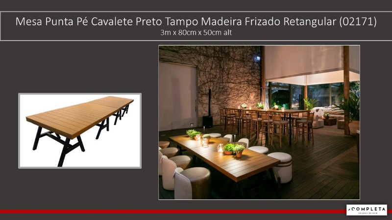 Mesa Centro Punta Pé Cavalete Preto Tampo Madeira Frizado Retangular - 2m x 80cm x 50cm alt