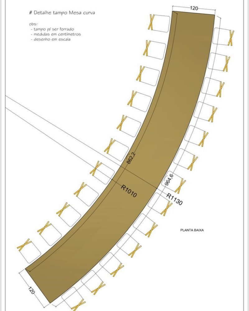 Mesa Personalizada Sinuosa - 5m x 1m x 80cm alt