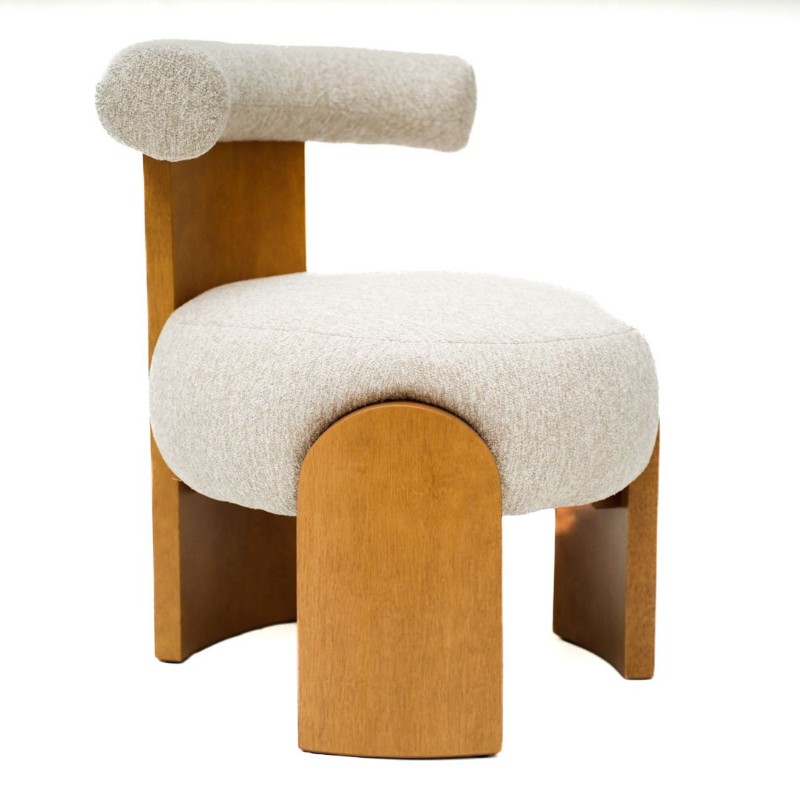 Poltrona Nina Boucle Cru Encosto Curvo Modelo 02