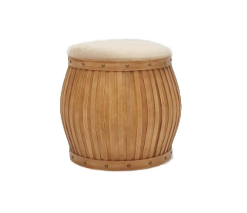 Puff Davi Madeira com Assento Fendi Redondo