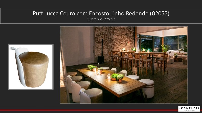 Puff Lucca Couro Com Encosto Linho Redondo