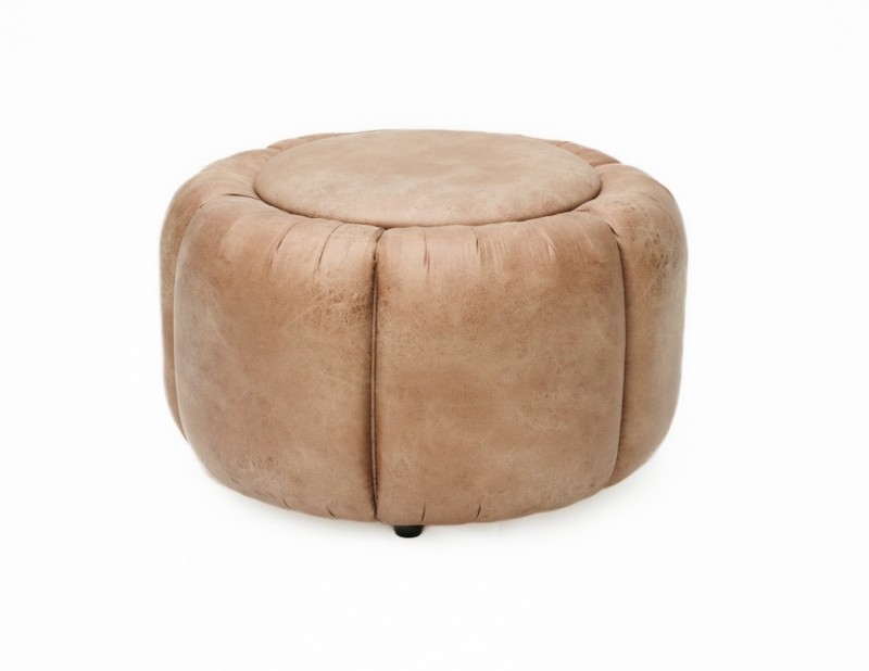 Puff Raul Couro Marrom Gomos Redondo