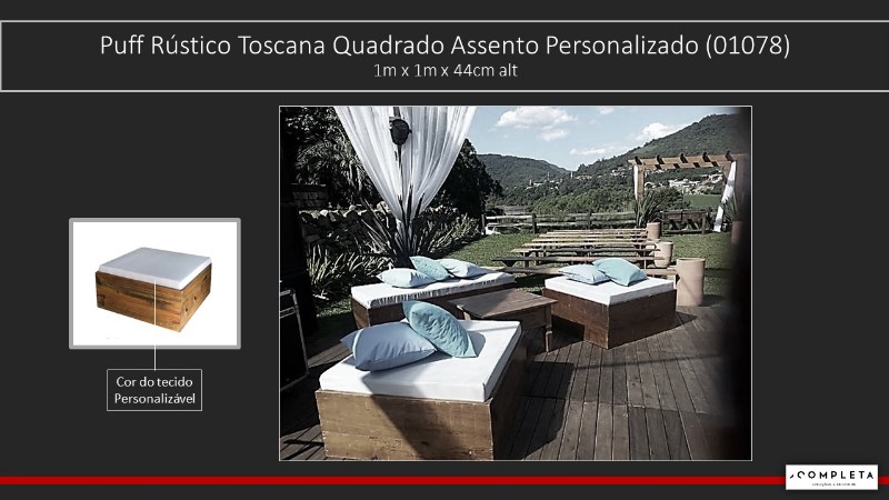 Puff Rústico Toscana Assento Personalizado Quadrado