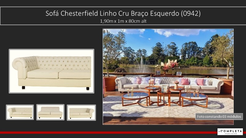 Sofá Chesterfield Linho Cru Braço Esquerdo