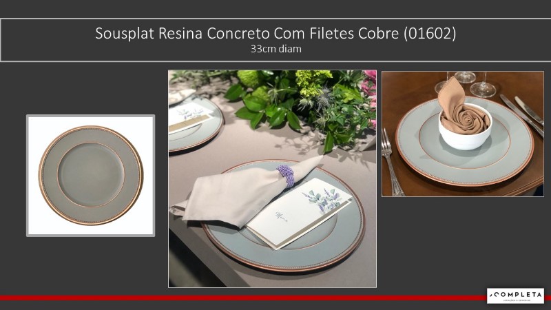 Sousplat Resina Concreto Com Filetes Cobre 33cm