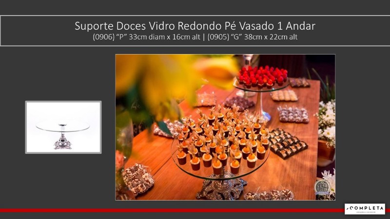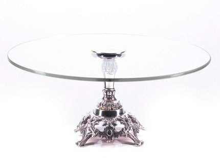 Suporte Doces Prata Vidro Redondo Pé Vazado “G” 1 Andar